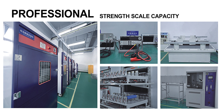 تتمتع الشركة بـ 26000 متر مربع من خط إنتاج حزمة البطارية باستخدام نظام تنفيذ الإنتاج المتقدم MES، لتحقيق إدارة دقيقة من الأجزاء إلى تسليم المنتج النهائي؛ مع أكثر من 200 مجموعة من معدات الإنتاج الاحترافية، مثل آلة لحام البقعة بالليزر الأوتوماتيكية، وآلة الفرز الأوتوماتيكية، والإنتاج اليومي من 10000 مجموعة، يمكن أن يصل الإنتاج السنوي إلى 2.56 جيجاوات في الساعة؛ مزايا مراقبة الجودة 1. تمشيا مع المبدأ القائل بأن تلبية احتياجات العملاء هي مهمتنا، فإن الفريق بأكمله مع سنوات من الخبرة في تصنيع بطاريات الليثيوم، وعدد كبير من معدات الاختبار.